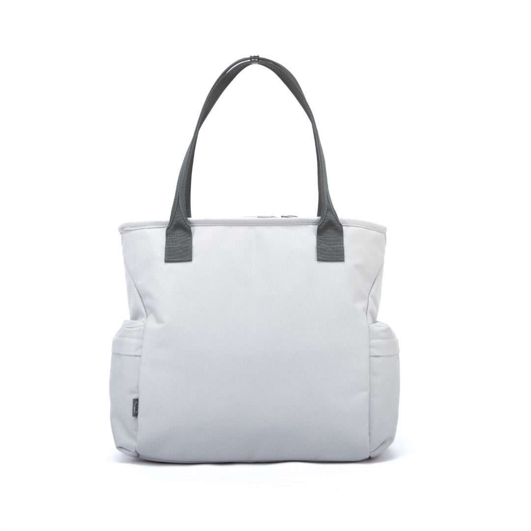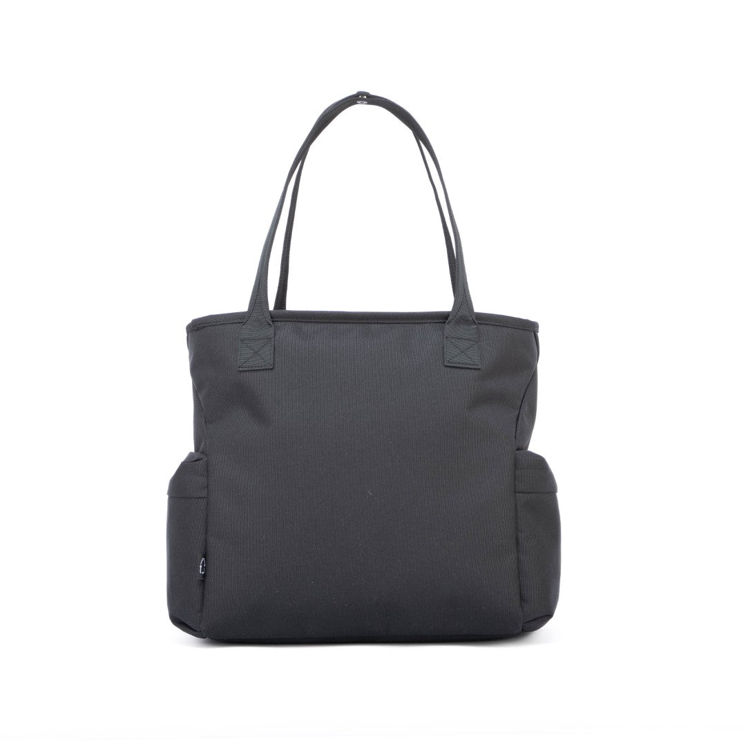 Low-key design, high-function details — a large zippered compartment, quick access phone pocket, dual handles for hand or shoulder carry, and two side pockets for extra storage.